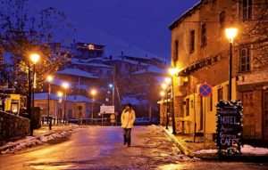 Με πολύ δυσκολία μπήκαμε στο αυτοκίνητο για να συνεχίσουμε . Χιόνι – χιόνι παντού, οδηγούσαμε σε δρόμο, όπου δεξιά και αριστερά το χιόνι υπέρβαινε σε κάποια σημεία και το 1,5 μέτρο . . . Φυσικά το φεγγαράκι ήταν καλός σύμμαχος, όπου ξαφνικά, μένω για δεύτερη φορά αποσβολωμένος ! ! Φτάνουμε σε μια πλατεία γεμάτη χιόνι περιμετρικά, αλλά στη μια μεριά της, ένα παραμύθι, ένα σκηνικό βγαλμένο από παραμύθι και πέρα από κάθε φαντασία. Μια σκηνοθετική Χριστουγεννιάτικη πανδαισία.