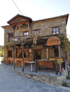 Ένα πελώριο τζάκι στη μια άκρη του μαγαζιού και δύο θεόρατα σκυλιά (ένα Ελληνικό ποιμενικό και ένα λυκόσκυλο), ακριβώς μπροστά του απολάμβαναν την φωτιά. Μια υπέροχη Μπάρα, στην άλλη άκρη με τα ποτά φωτισμένα από πίσω να τονίζουν τα ωραία στοιχεία της «Μπάρας». Σχετικά λίγος κόσμος τριγύρω, σε μια μάλλον κατανυκτική ατμόσφαιρα, με χαλαρή μουσική. Ο κόσμος, στο σύνολό του, είχε μια παραξενιά. Δεν ήταν συνηθισμένοι ντόπιοι και αγρότες. Ήταν προς το free style, μακρυμάλληδες, λιγομίλητοι και άκουσα κάποιους από αυτούς να μιλούν και σλάβικα.